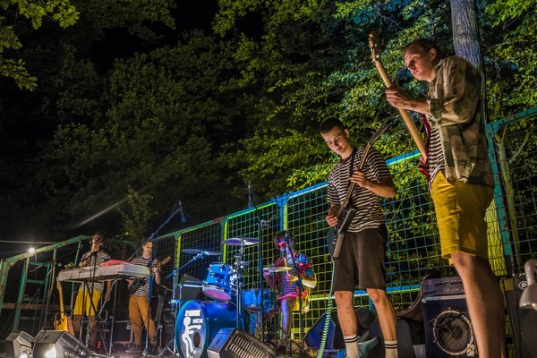 První festival, na kterém jsme hráli. Poprvé hrajeme písníčku Superzoom.